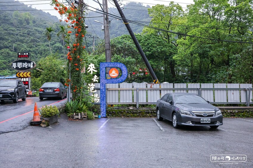 【來去泡湯坊】店前有提供免費停車場,斜對面就是春風湯屋平價湯屋,這條路湯屋好幾間,價格都是兩百元起~