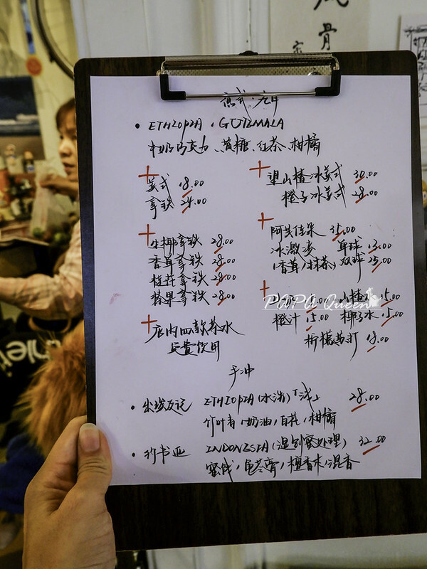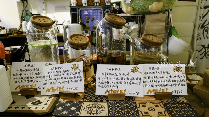 店內的四款茶水是免費的,手沖咖啡有兩款 這名字還挺特別 “出埃及記” ,” 約書亞” 老闆大概是基督徒,菜單上都畫著紅色十字 (PA根據菜單上蛛絲馬跡瞎猜…沒問過老闆)