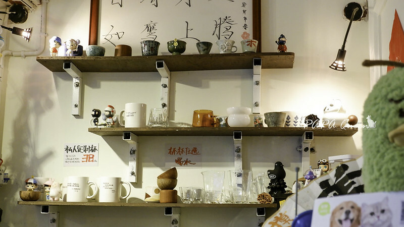 入內先喝杯茶吧,自己挑自己愛的杯子,這裡茶各有不同(免費),想點咖啡的朋友這裡有手沖單品也有拿鐵這類的義式特調!