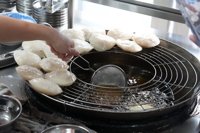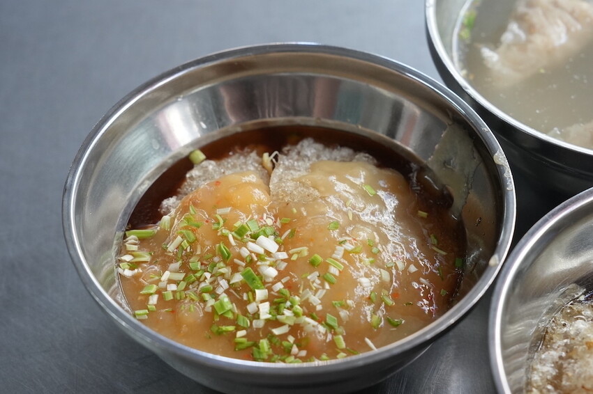 收穫滿滿戰利品後,就到餛飩祖師-海鋒肉圓為這趟旅行畫上完美結尾吧!這家海鋒肉圓是當地人也愛的平價美食,主推外皮酥酥脆脆的脆皮肉圓,一口咬下肉質非常入味,餡料的筍子也很脆口。