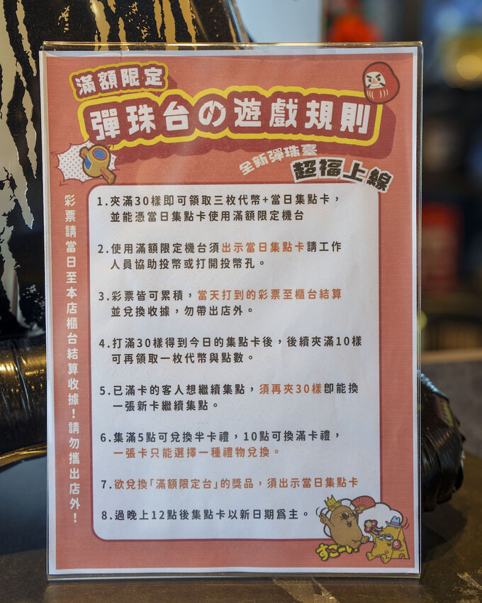 另外,沙發馬鈴薯樂園還有推出彈珠台的活動,只要夾到30樣就能獲得3枚彈珠台代幣,如果之後再每夾10樣可再獲得一枚彈珠台代幣+1點,集五點即享半卡禮;集十點則有滿卡禮。來玩夾娃娃還能順便體驗到彈珠台真的超棒的,來這裡大、小朋友真的都能玩得超開心。