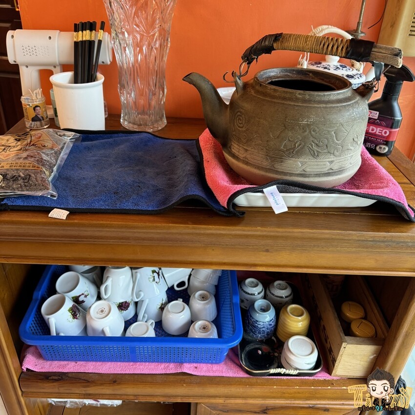 這是老闆特調的普洱茶+白鶴靈芝,對身體非常好,老闆說免費提供一定要多喝 XD
