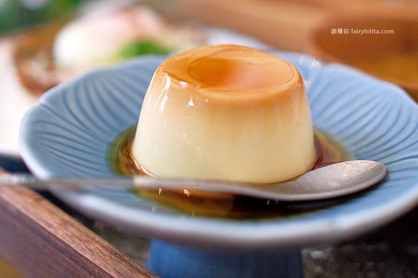 滑順的口感就這樣融化在舌尖,蛋香及它的甜味與味蕾融合,很巧妙的是,你還吃得到布丁的Q彈,質地略帶點稠厚,蛋香整個在嘴裡化不開似的,讓人意猶未盡一口接著一口嚐,還真的停不下來。