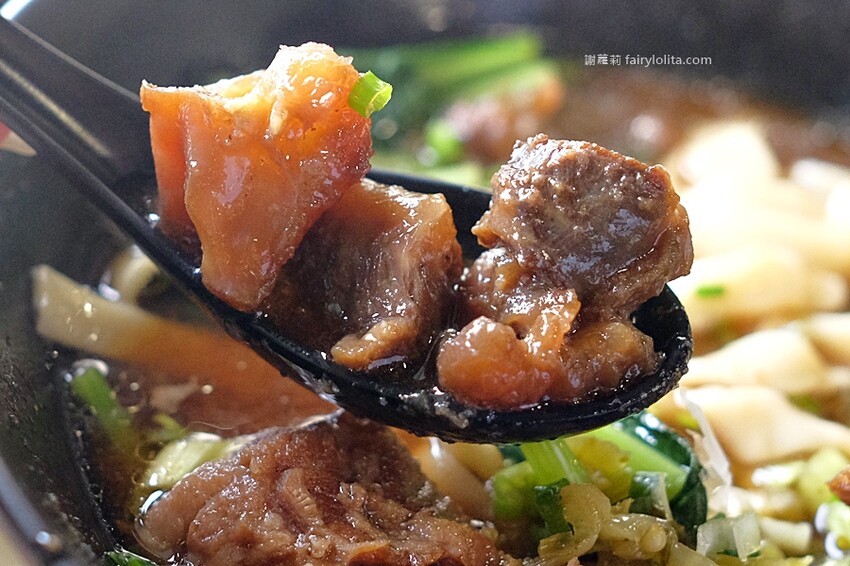 牛肉的部份吃起來不會柴,軟硬度是偏硬一些,算是比較有咬勁的口感,每塊的大小切得蠻適中的,因為已經先行滷過,所以吃起來讓人感覺愈嚼愈香。