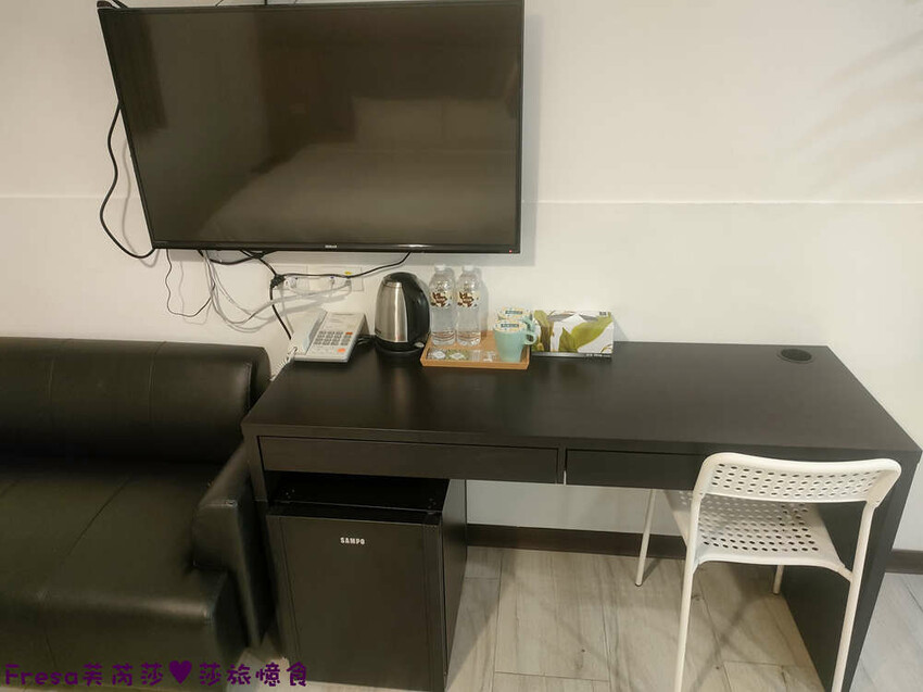 電視下方長桌可以放伴手禮、也能當商務桌.