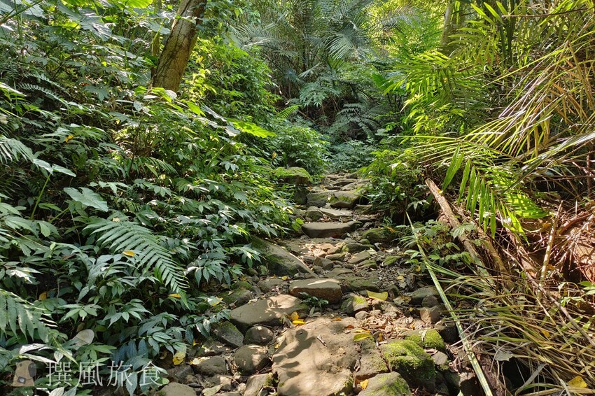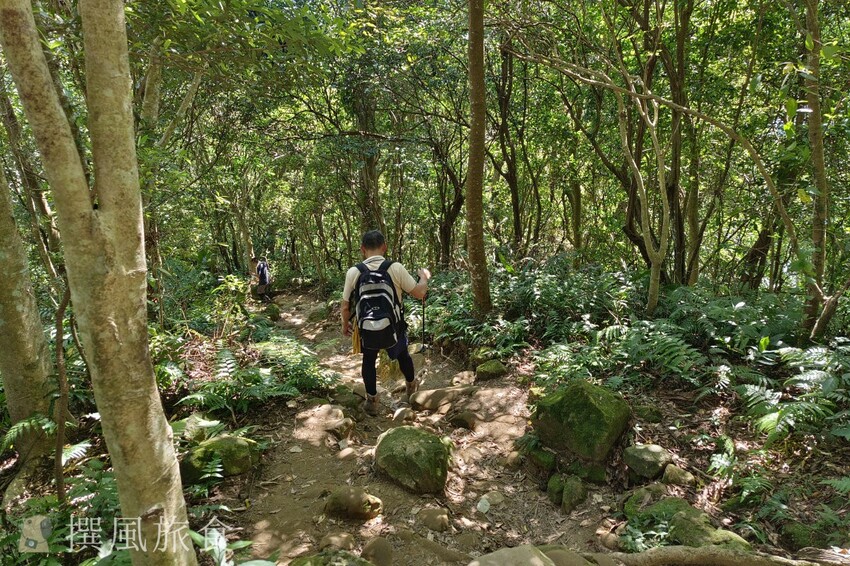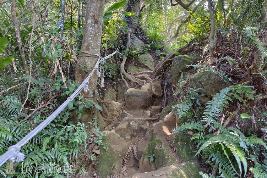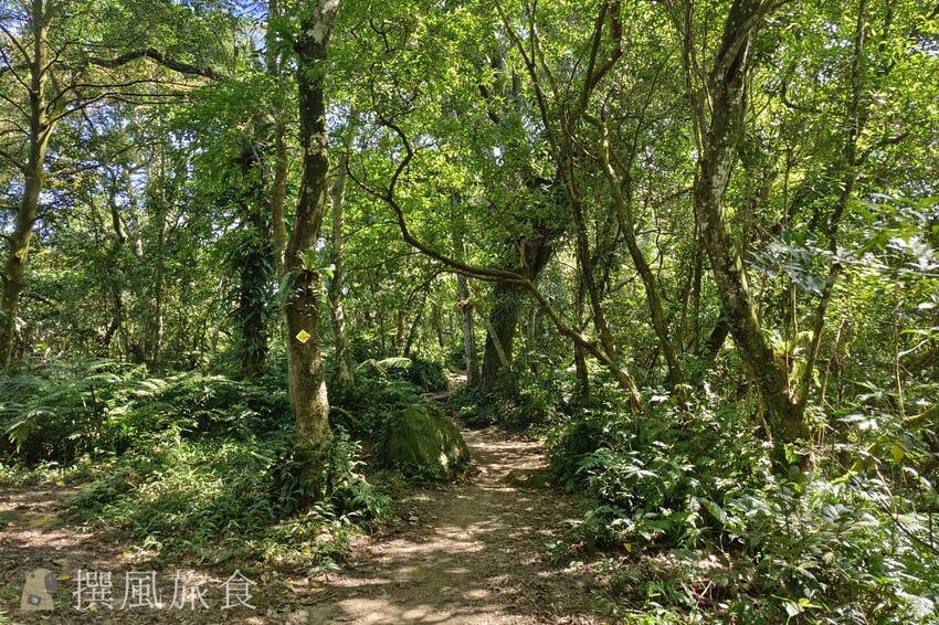 這段沿途風景幾乎都被大樹遮蔽,但有讓人感到愉悅的綠意、鳥語,與新鮮空氣,老實說還是蠻讓人享受的,這段步道還是建議行進時更專注在路況的觀察,原生路況若有踩空很可能會扭傷。此外,往溪洲山方向沿途有小小的路標,如果擔心迷路,也建議要下載離線地圖,像撰風中途一度走錯方向,幸好察覺不對勁時立刻比對地圖,馬上修正回正軌。