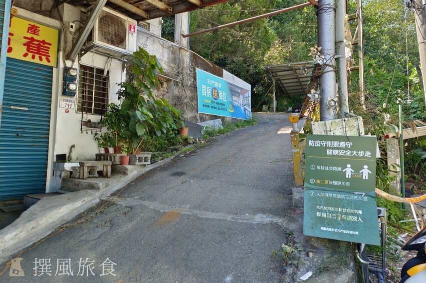 選擇小吃店的登入口的初期步道上升陡峭,是很好的飆汗選項,可以從「坪林收費站」步行至小吃店,要前往「坪林收費站」可以搭乘503台灣好行石門水庫線(假日行駛)4,或從「大溪總站」搭乘51105、5110A6至「坪林」下車。