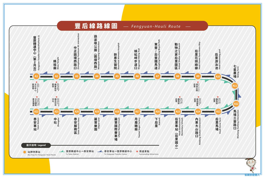 幾乎囊括了從豐原到泰安所有的主要景點,對於想要后里豐原泰安跑透透的人,相當方便呢!