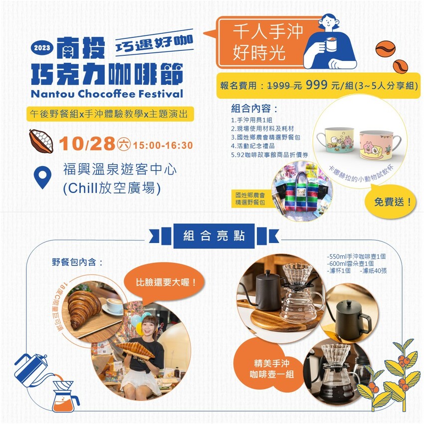 2023南投巧咖節活動十分精彩,不僅有主題野餐日及壯觀的千人手沖咖啡及烘豆體驗,更結合南投溫泉季,還有豐富的演唱會舞台表演,千萬別錯過~