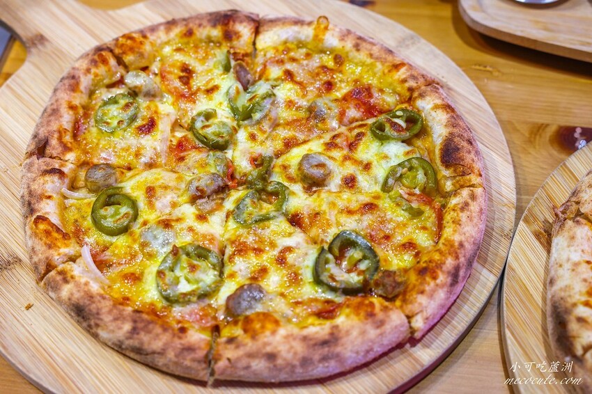 披薩還加了美式香腸片和義式香腸丁提升風味,鹹香開胃,又辣又過癮的推薦!