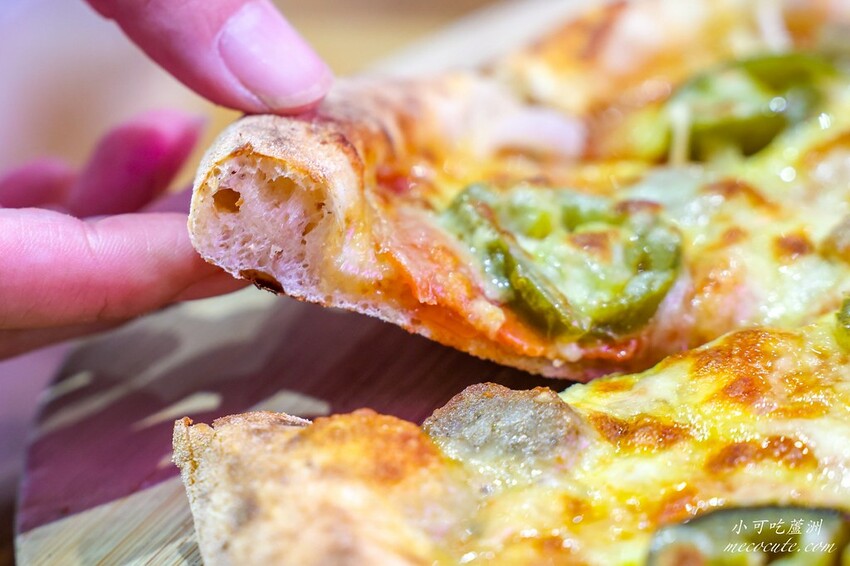 拍拍手的披薩麵糰以天然自家培養低溫,魯邦種酵母,混合日本山茶花、DNS全粒麥粉、茉莉杜蘭麥粉,以私房比例低溫發酵而成,擁有多重天然風味及入口的淡雅回甘。