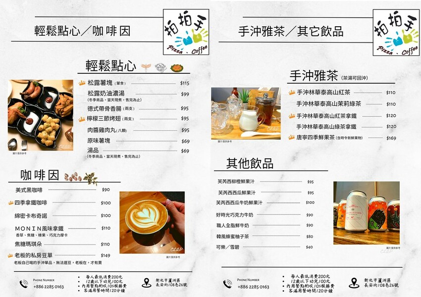 拍拍手披薩咖啡菜單價錢