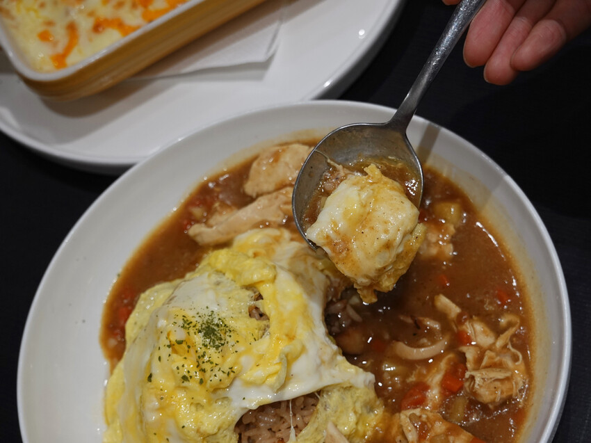 無論較稀的咖哩醬,或是蛋包內的炒飯,都可以看得出是屬台式風味,較不合我胃口,但蛋包的軟嫩度倒是滿優異,份量也是不用我多說的足以讓成年男性有飽足感。