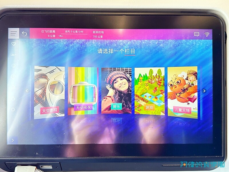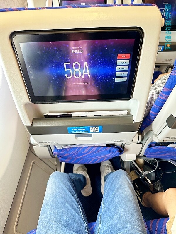 我的座位58A是提前在網上選的,雖然偏後面一點,但這裡看出去的窗景不會被機翼擋到。最驚訝的是竟然有個人電視,原本以為這種短航班沒有。