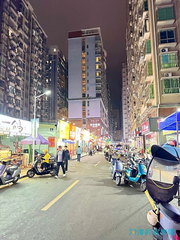 它所在的地方是一個小區裡,門口馬路小小的,兩旁滿滿都是商店、小吃店、水果店,非常有在地煙火氣,我很喜歡。