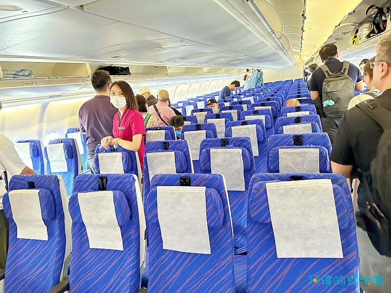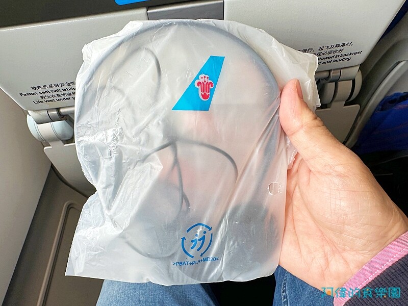 機內座位是2-4-2的配置,座椅上的枕巾紙全白的,沒有印上南航的圖案,覺得有種陽春感。