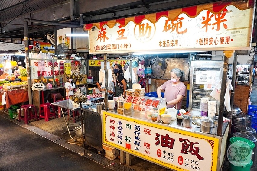 麻豆李助碗粿位於熱鬧的新光黃昏市場第一排,