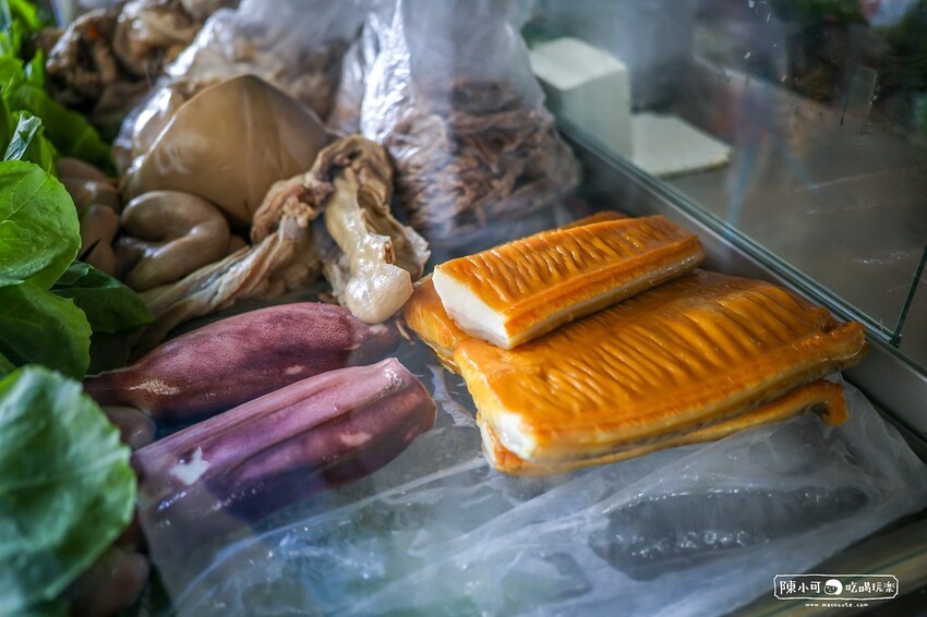 放黑白切的冷藏玻璃櫃裡擺滿了各種食材。