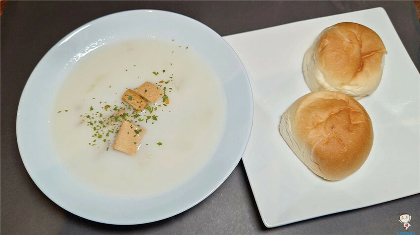 表現中規中矩的主廚濃湯+好吃的大蒜麵包