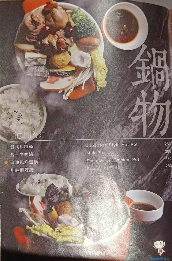 第三頁是鍋物,價位$250~280,跟義麵和燉飯比起來,相對便宜些