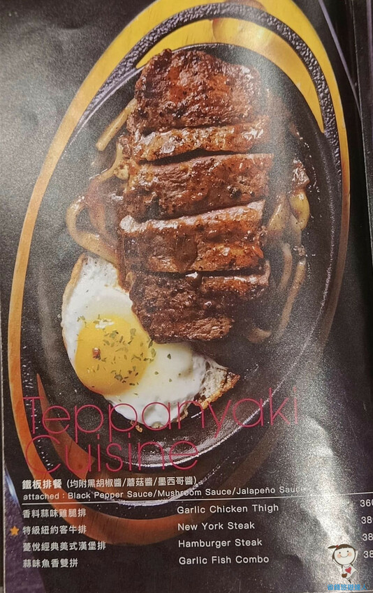 第四頁的鐵板排餐,價格雖然被我不小心拍歪了,但看得出來也不貴,人人負擔得起