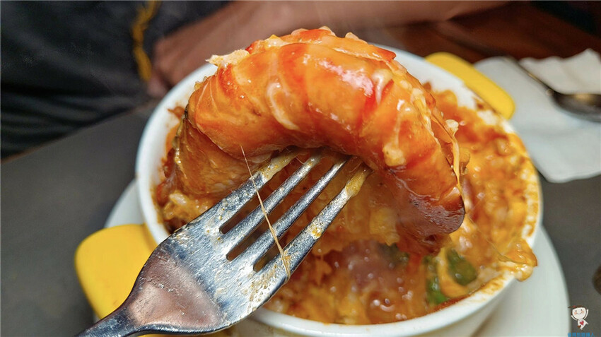 何況裡面還有這麼大一隻肉質彈牙的虎蝦,搭配茄汁起司燉飯,真是太完美了