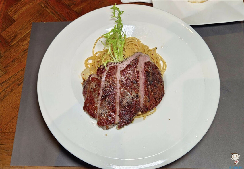主餐四選一,所以我選了蒜味牛排麵,單點原價$340