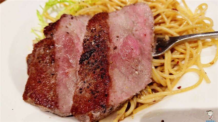 牛排給得不小氣,煎到7~8分熟還帶點血色,嘗起來口味鮮嫩得恰到好處