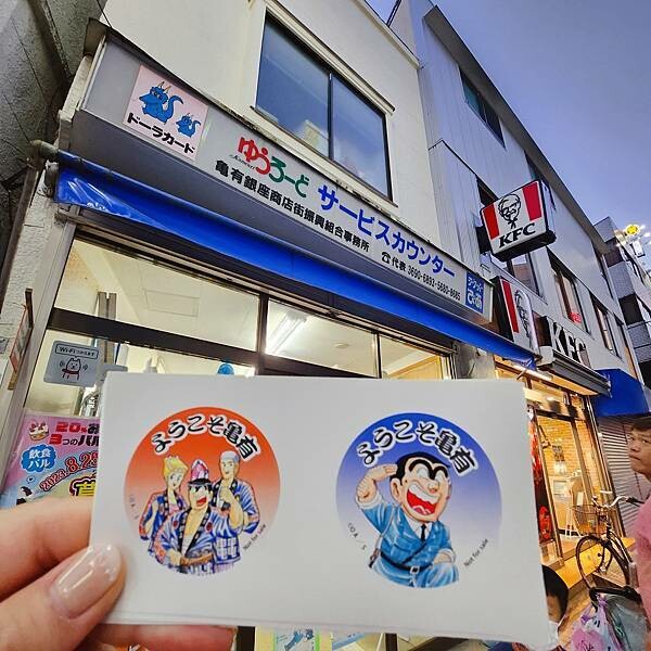 匆匆拍完照後,我就速速衝到龜有商店街的服務台索取人孔蓋卡,這邊給大家給肯德基爺爺的地標會比較好找。請認明這間店面就對了! 對了先提醒大家,商店街服務台預計在2024年會搬家喔!! 建議大家出發前一定要到商店街官網再確認一下位置。