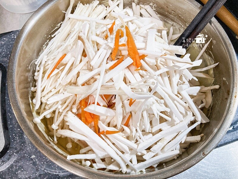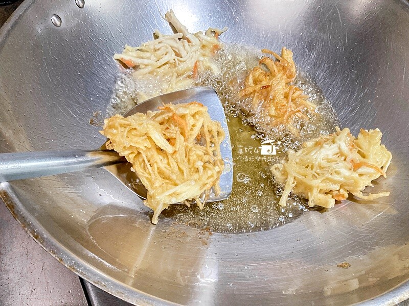 金針菇杏鮑菇天婦羅的粉漿裡已經有調味,現炸的口感就很涮嘴