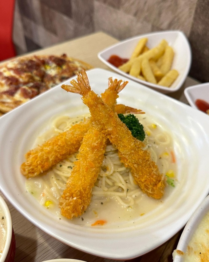 日式炸蝦白醬義大利麵(必點)