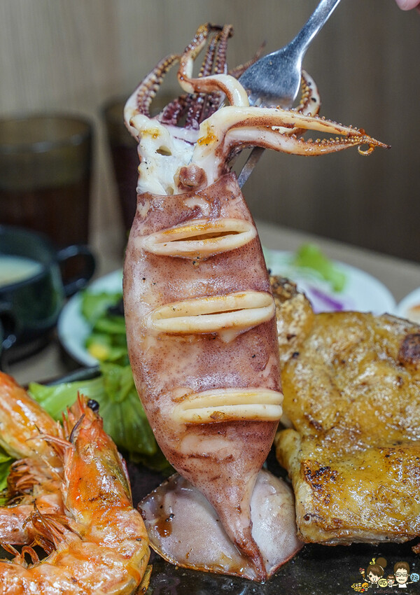海陸一次通吃,使用阿根廷魷魚好大尾,口感很脆又香甜