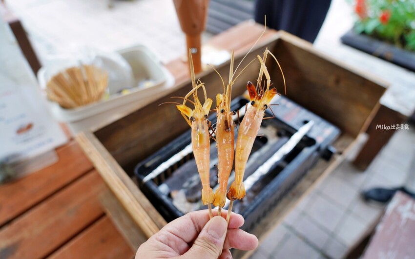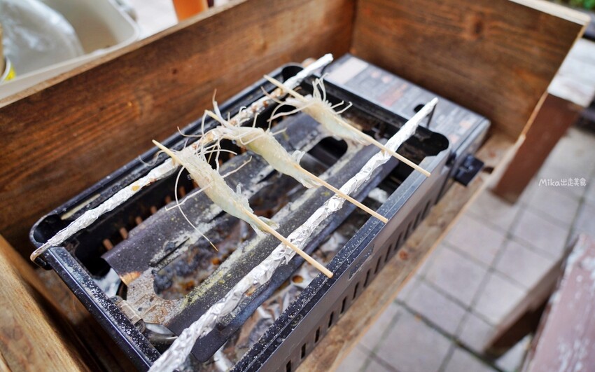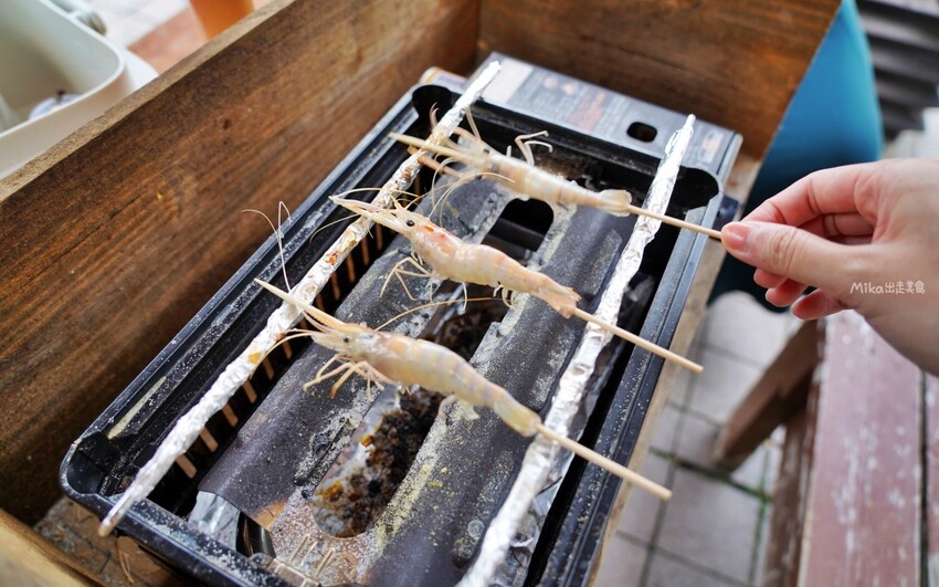 還有烤蝦專用的烤爐,只要把蝦子清洗乾淨,並插上竹籤烤來吃即可。