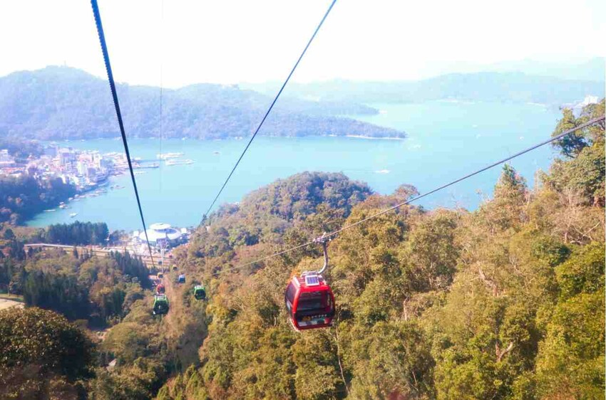 日月潭纜車到九族文化村大約十五分鐘,沿途可以俯瞰日月潭的美。