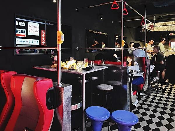 旁邊的座位區域也不馬虎,用了台北市應該大家都搭過的公車當裝潢元素,公車的座椅,車上的扶桿,甚至下車鈴都原封不動的搬到店內,就是座位空間很窄,太胖真的是擠不進去位置…