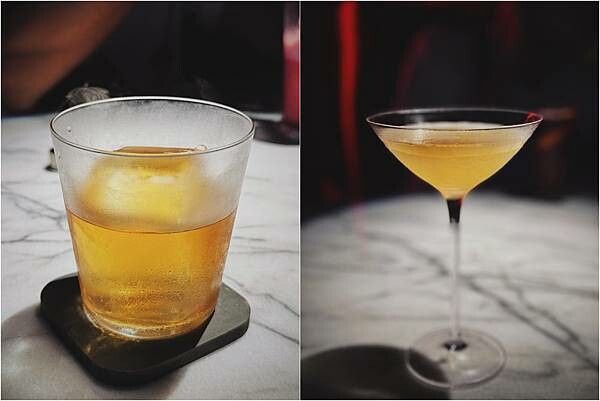左邊有點像whisky sour,上桌是裝在一個像試管一樣的容器,到出來會有一陣煙,(可以到IG上看影片.)右邊是經典調酒sidecar,可是我不知道為什麼沒有糖口也沒有鹽口..但味道很平衡.