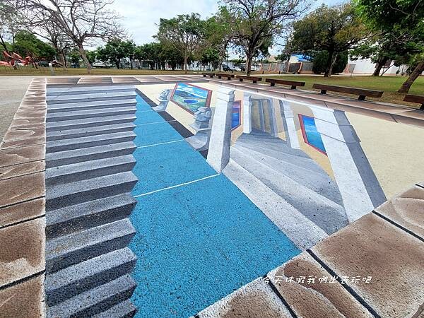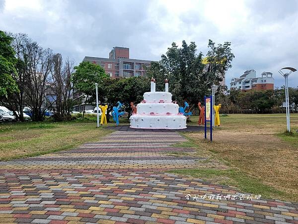 美術館對面是一處公園裡面有蛋糕裝置藝術
