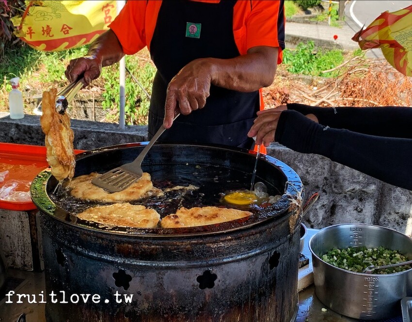 這次小孩過生日,來到宜蘭遊玩,宜蘭絕不能錯過的美食之一,那就是蔥油餅。在民宿搜尋附近的蔥油餅,意外發現位於冬山,小有名氣的武淵廟前廣場蔥油餅。
