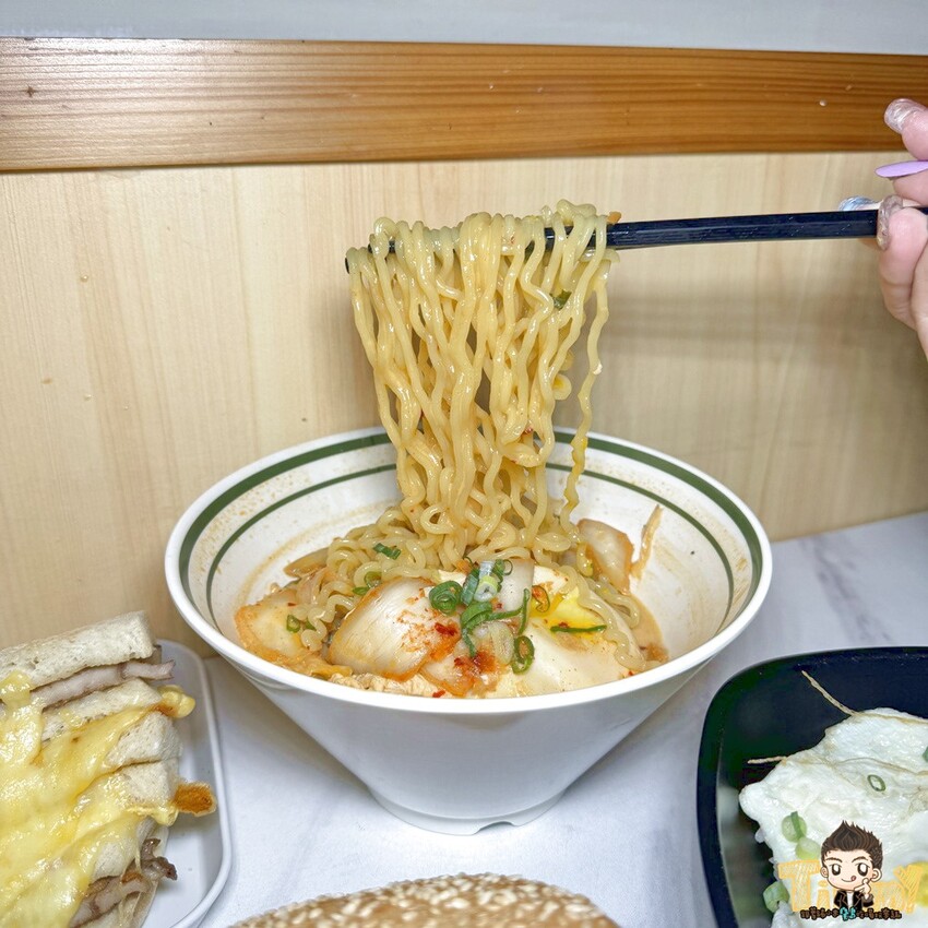 麻奶辛拉麵(105元)韓式泡菜湯頭加入起司,奶香味與辣味結合,屬於小辣的口味~