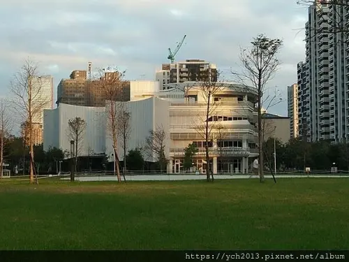 看完展覽,外面天都黑了。旁邊有個空曠的公園,散散步很舒服。