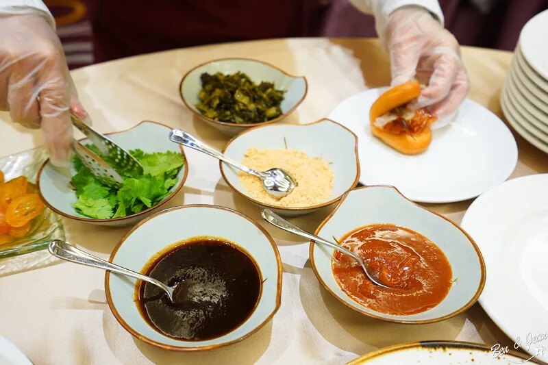 刈包,也是人盡皆知的台灣小吃。這裏將原本的滷肉改成了現切烤鴨,加上香菜、酸菜、花生粉與腐乳醬