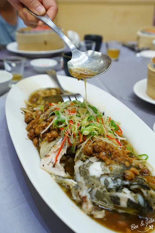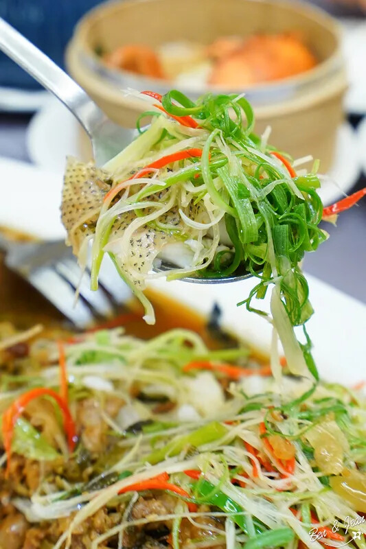 這次選用了石斑魚,運用「清蒸+干煸醬汁」的手法完成