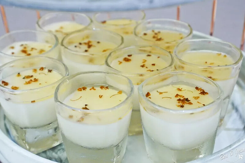 雪白的杏仁凍上,淋上日本黃金桂花蜜,冰冰涼涼的清爽香甜好好吃