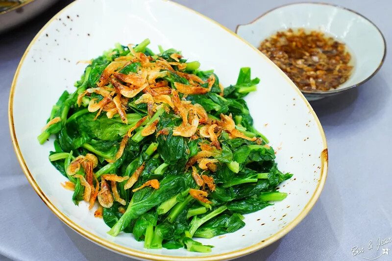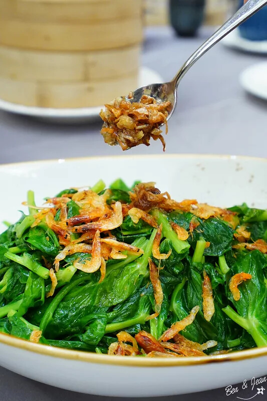 這次運用清炒的豆苗葉,配上用紅蔥頭與蝦皮煉出來的鴨油,簡簡單單就非常好吃