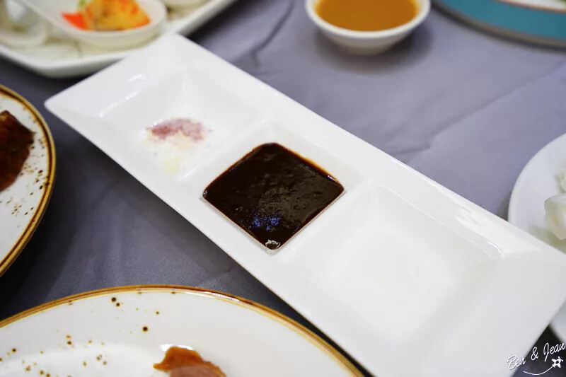 料理醬汁:「客家酸菜干煸汁、樹子蔭冬瓜、酒釀干燒、避風塘香蒜、蒜子胡椒、黑蒜松露醬」