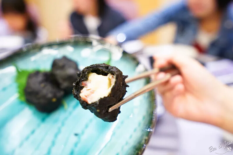 長榮鳳凰酒店將傳統的糕渣重新注入新生命,內餡又加入了鴨賞,再沾竹炭粉油炸,變成黑嚕嚕的模樣