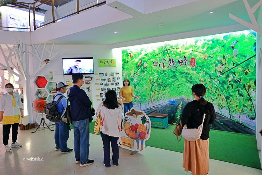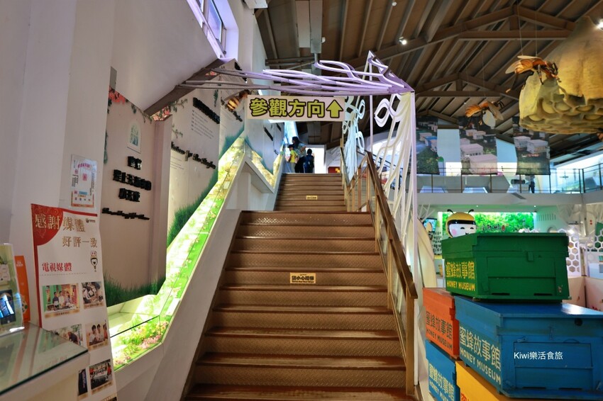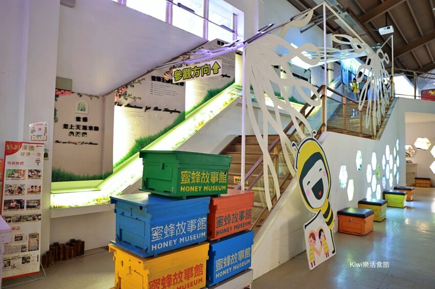 蜜蜂故事主題館進入後會看見賣場與主題館相連結,想要參觀蜜蜂牆請直接往二樓走上去,亞洲最大最專業的養蜂場就在蜜蜂故事館,可以看見真實的蜜蜂牆,蜂巢與蜜蜂相關知識,這裡沿著樓梯走也可以看見蜜蜂的一生,天氣冷也需要蓋被子的蜂箱是不是太酷了!