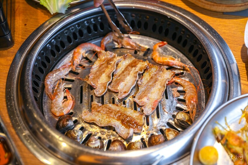 烤豬肉、烤牛肉、韓式大醬海鮮湯、包肉生菜、石鍋拌飯、蛤蜊、蝦子、自助吧韓式小菜、炸物和季節水果都是吃到飽。