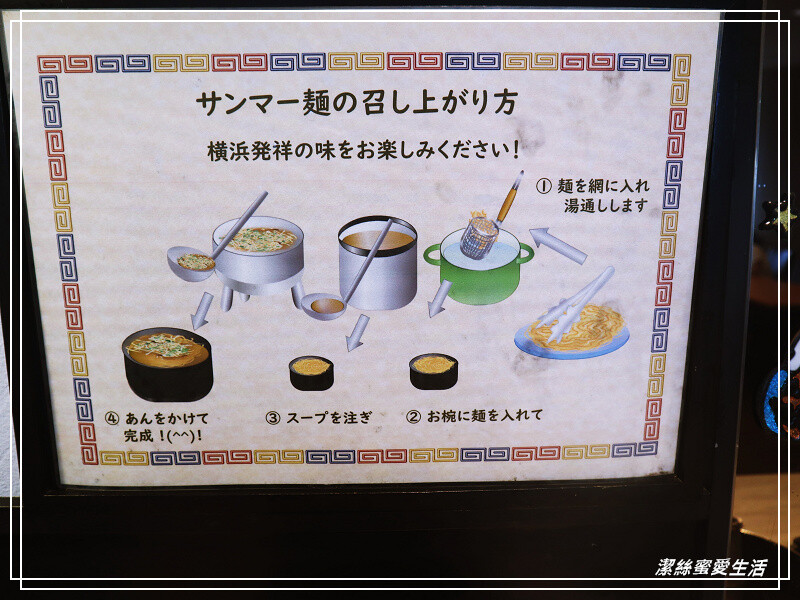 旁邊還有使用教學,先夾取麵條,再放到鍋中加熱,最後再加拉麵高湯即完成——