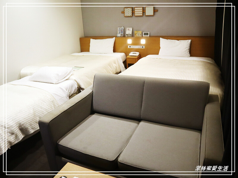 塞了三張床和沙發後,幾乎空間就滿了XD,要從加床的旁的狹小通道進出,還只能單人走動,無法會車哦😂😂,整個超小覺得鬧,我們都笑噴了。